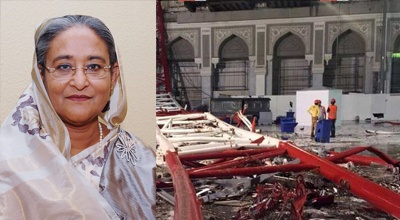 প্রধানমন্ত্রী শেখ হাসিনা সৌদি আরবের মক্কায় পবিত্র মসজিদ আল হারামে (গ্র্যান্ড মসজিদ) নির্মাণকাজের ক্রেন ভেঙ্গে পরে হজযাত্রী হতাহতের ঘটনায় গভীর
