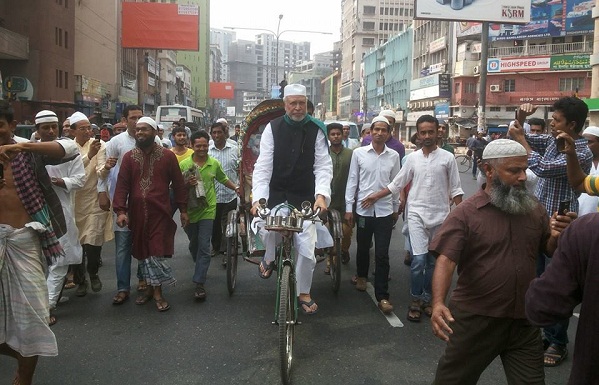 শুক্রবার অবস্থান কর্মসূচির সামান্য বিরতি দিয়ে যান রিকশায় চড়ে বায়তুল মোকাররম মসজিদে জুমার নামাজ আদায় করতে।